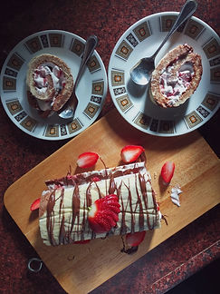 Set your Swiss roll onto a serving plate and allow it to set in the refrigerator for 10-15 minutes. Trim off the sides to get even slices and drizzle over some more Nutella and chopped strawberries before serving. Enjoy! :)